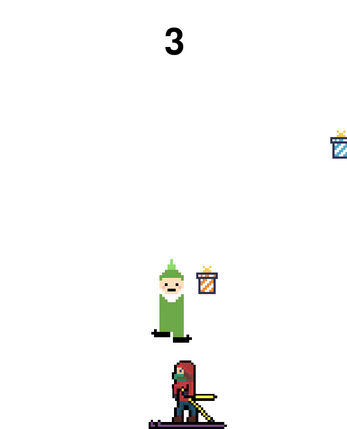 Oh no! Santa has crashed on a local ski resort, all the presents are flying everywhere! Elfy must try and catch all of them so everyone can enjoy christmas. But there is a problem! There is skiers flying around everywhere. YOU must help Elfy dodge the skiers and collect the presents. Have fun!